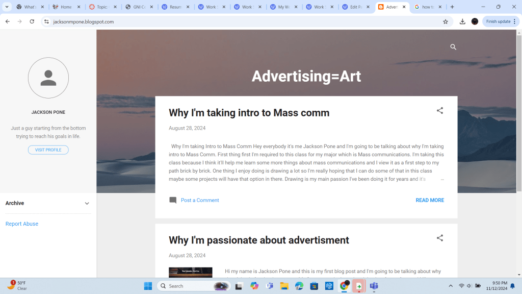 This is my blog where I mainly talk about my Mass Comm class and advertisements in media.